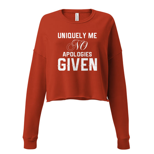 Uniquely Me No Apologies Given Women's Empowerment Crop Sweatshirt